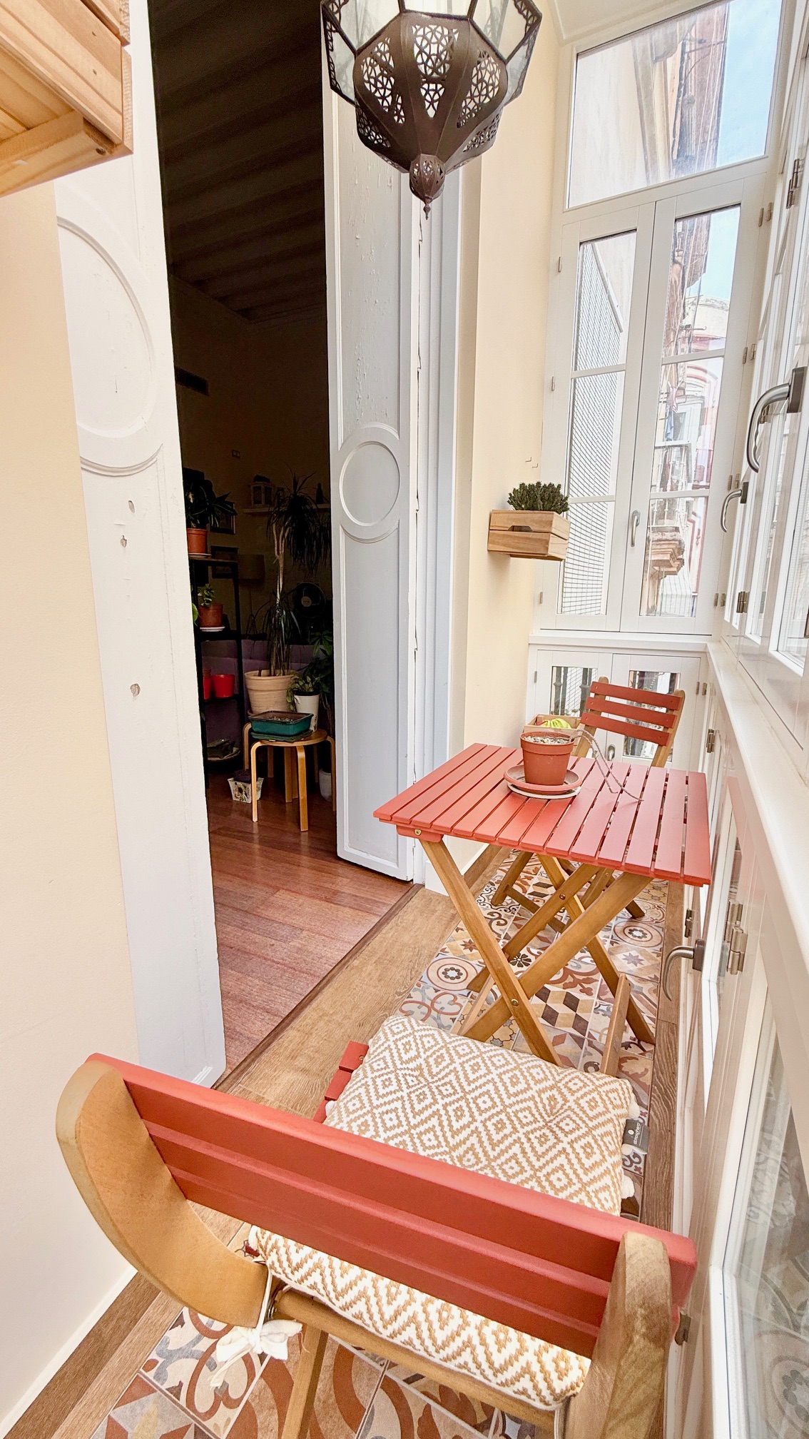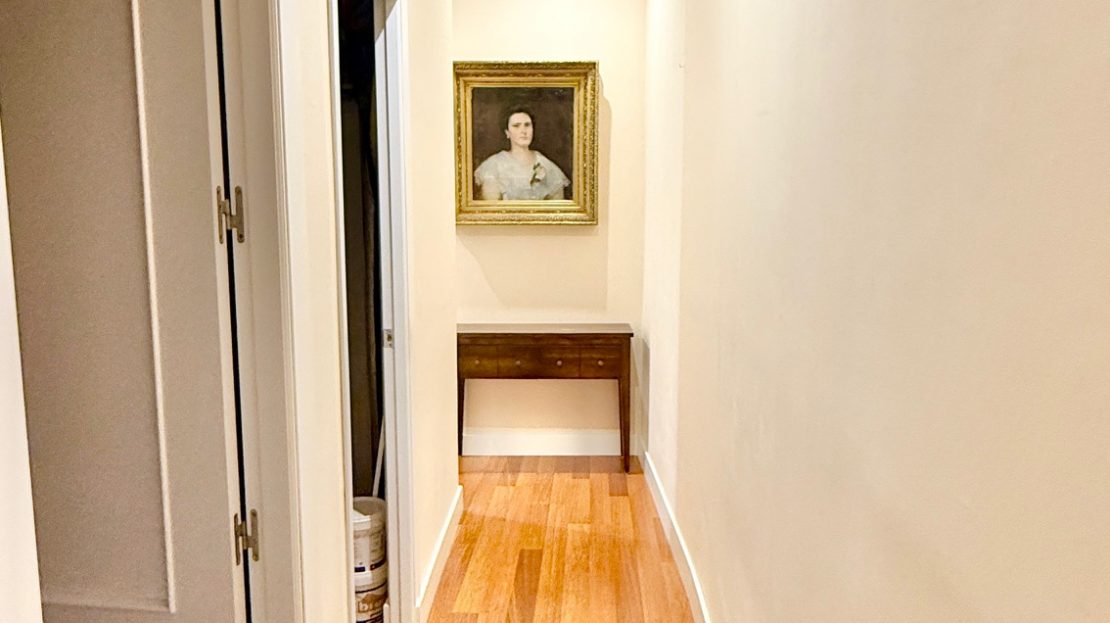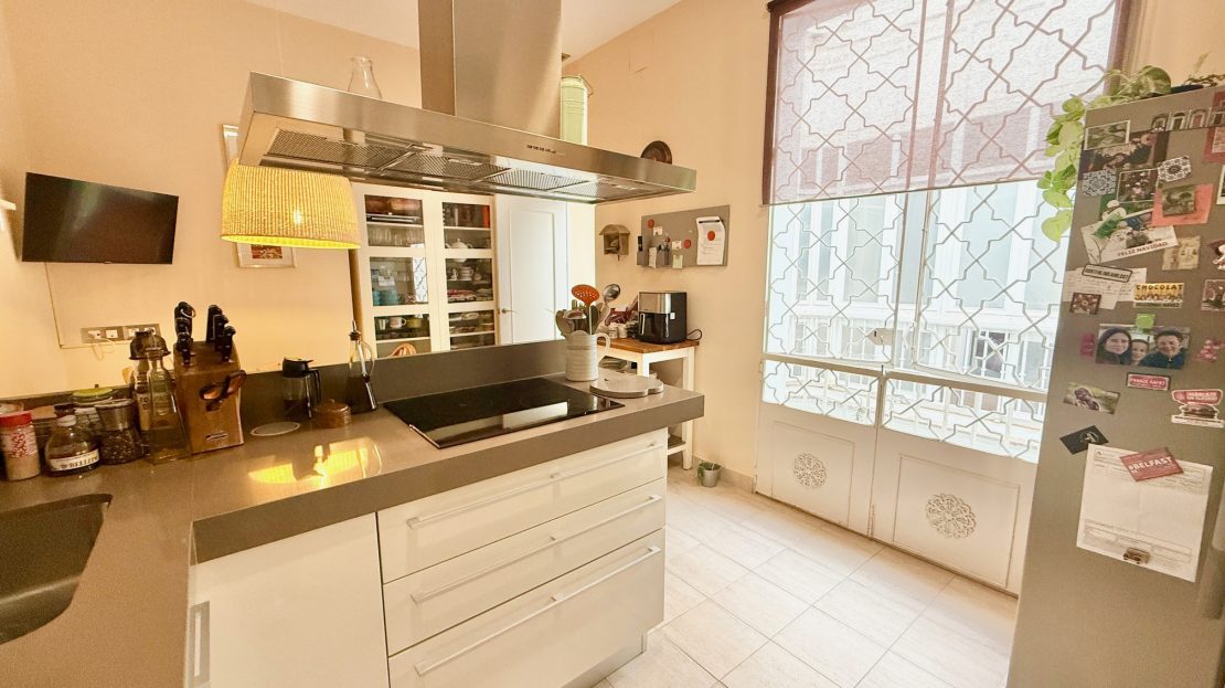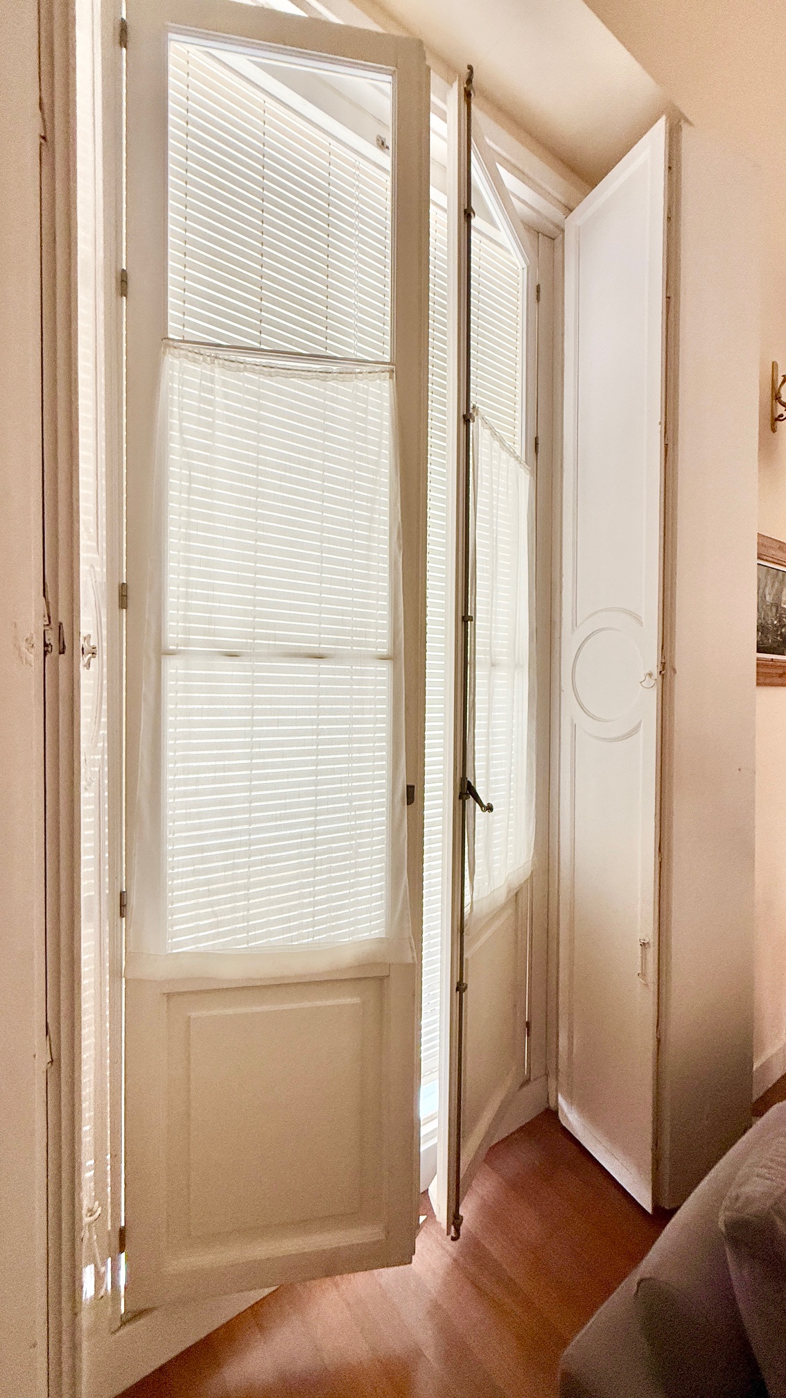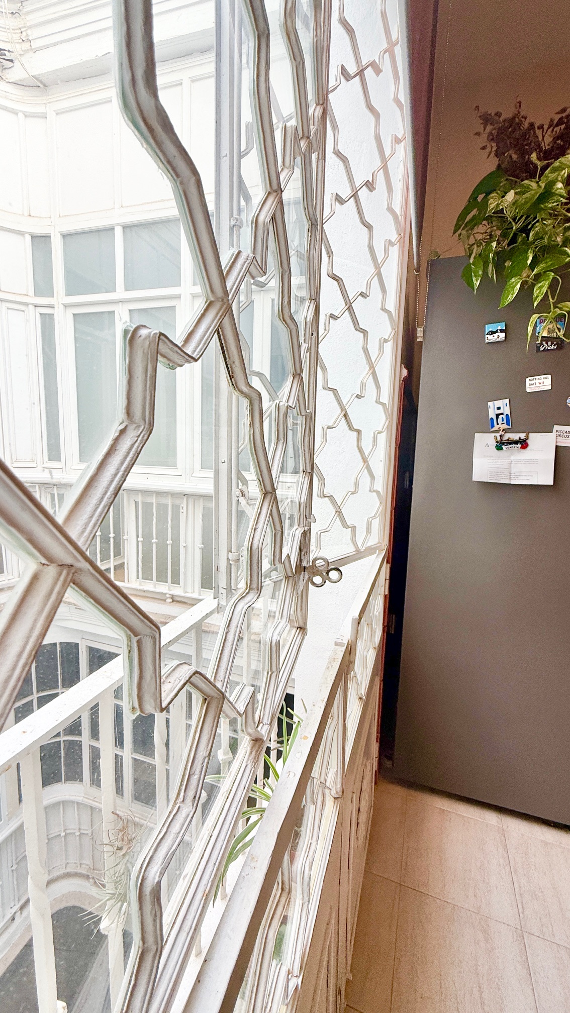 Step inside to discover high ceilings, spacious rooms, and a sense of calm. The hallway leads to two bedrooms and a bathroom, then opens through an Andalusian-style internal patio into a stunning formal lounge. This room is a showstopper: tall decorative ceilings, elegant feature windows, and a balcony overlooking the charming streets below, flooded with natural light.