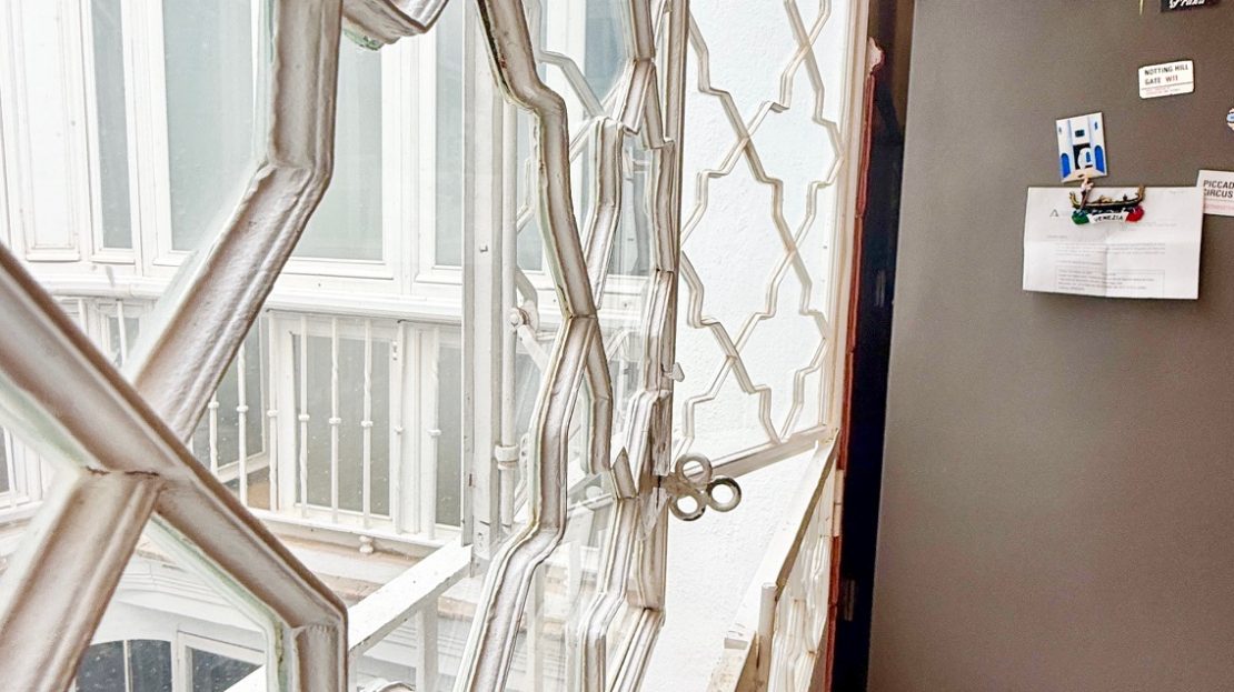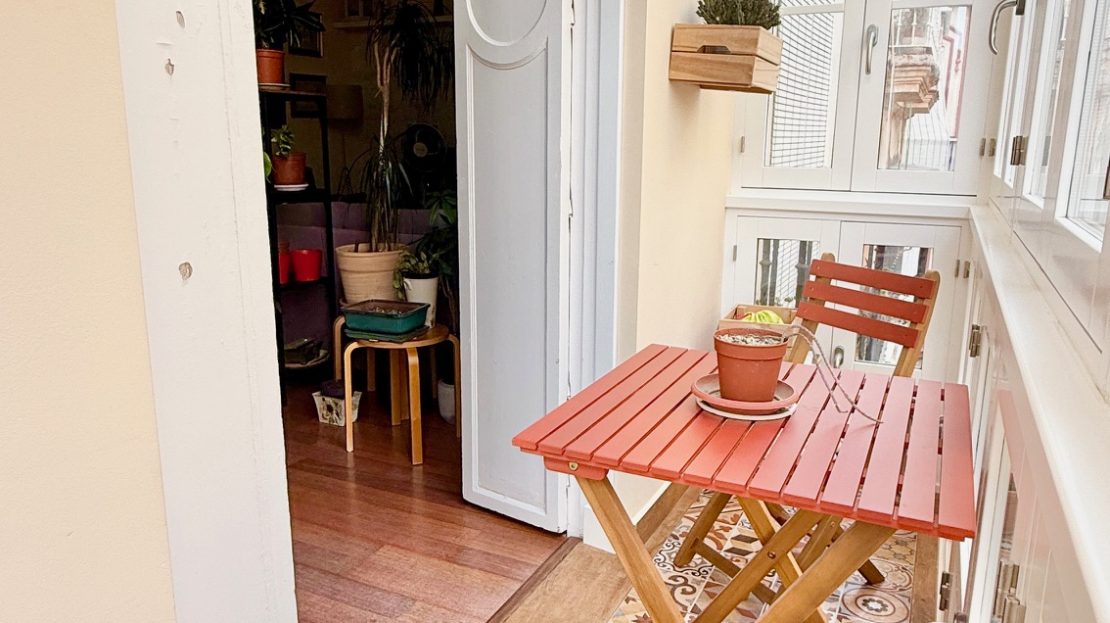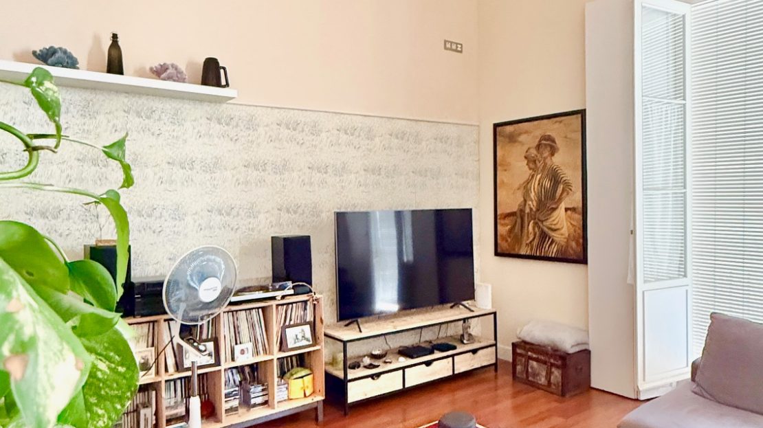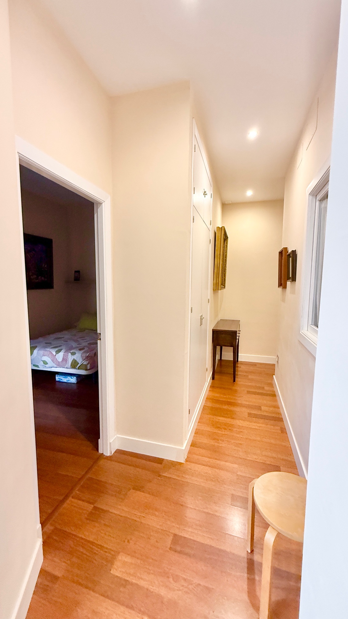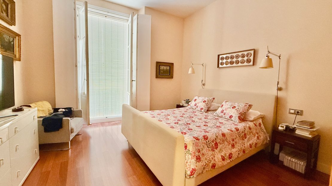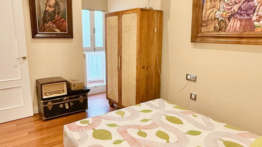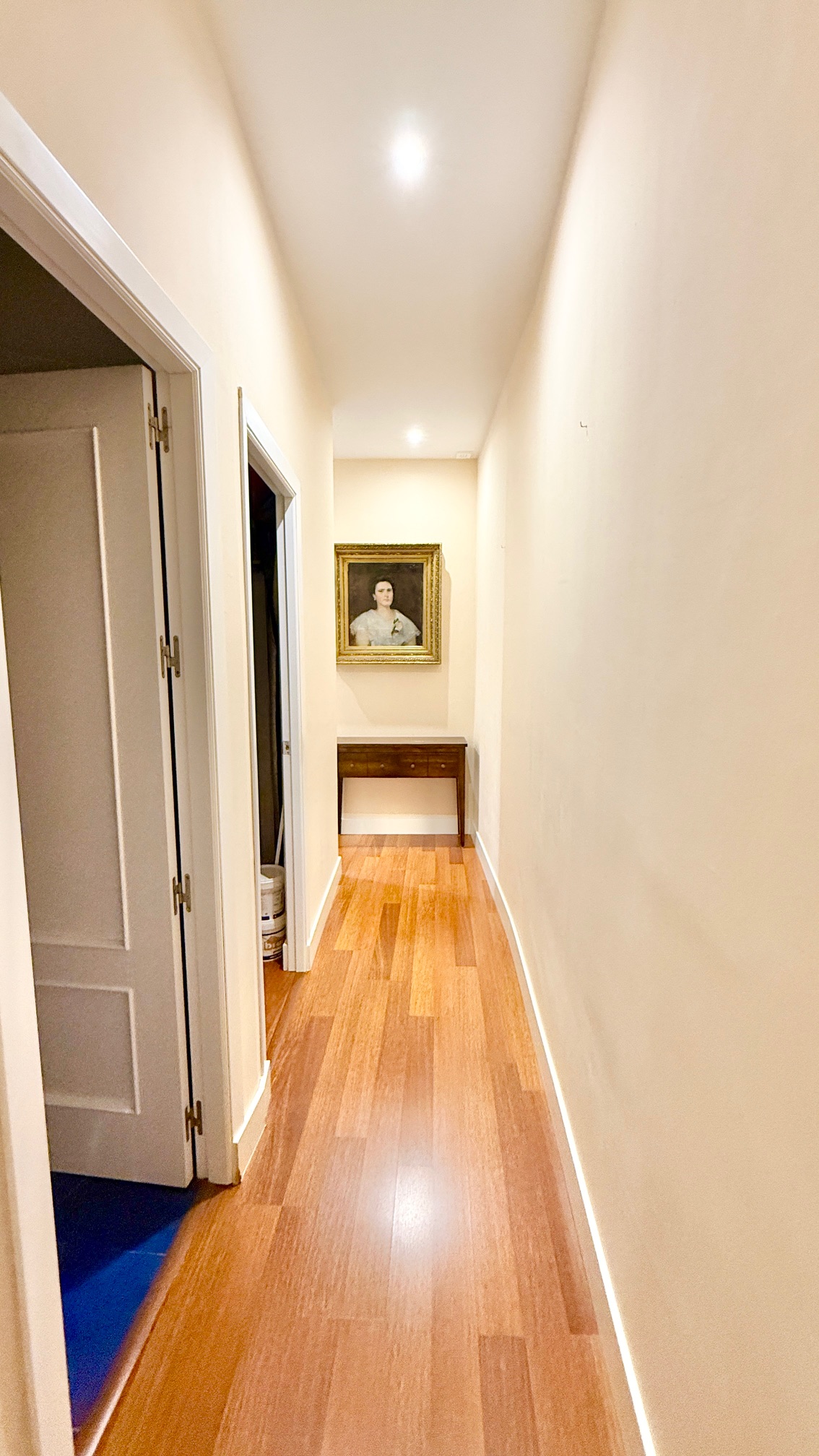 Step inside to discover high ceilings, spacious rooms, and a sense of calm. The hallway leads to two bedrooms and a bathroom, then opens through an Andalusian-style internal patio into a stunning formal lounge. This room is a showstopper: tall decorative ceilings, elegant feature windows, and a balcony overlooking the charming streets below, flooded with natural light.