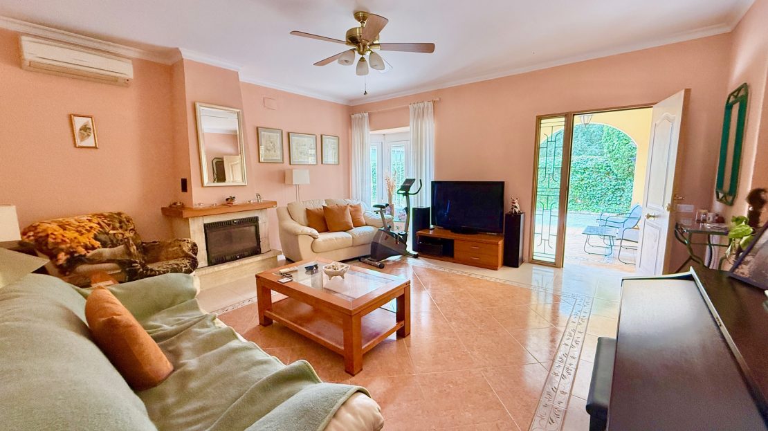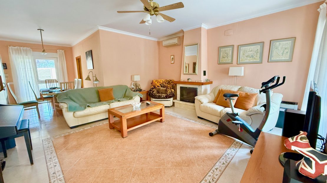 Inside, the villa feels bright and welcoming. The living area has a comfortable open-plan layout with a lounge and dining room together, centred around a feature fireplace that adds warmth and charm on cooler evenings. The kitchen overlooks the pool area, making it easy to serve food and drinks to the outdoor terrace — perfect for summer dining and social gatherings.Fully fitted kitchen with ample electrical sockets for modern lifestyle cooking facilities.
